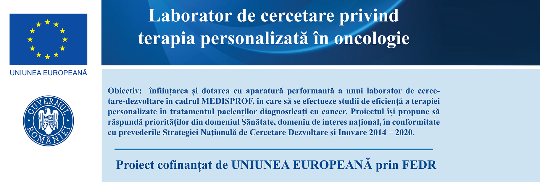 Services: Preparation of the funding application and the funding file for the Research Laboratory on Personalized Therapy in Oncology, ID 487, SMIS code 103392, project financed by the Operational Program Competitiveness 2014-2020 – Action 1.1.1., Large Research and Development Infrastructures.