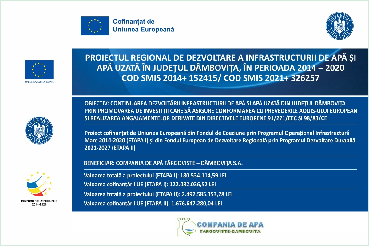 Technical Assistance for Project Management and Works Supervision under the “Regional Project for the Development of Water and Wastewater Infrastructure in Dâmbovița County, 2014–2020 Programming Period”
